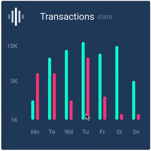 This allows you to plot a number of points anywhere on the graph by specifying the x and y coordinates along with a radius and color. The most amazing part about this chart is the animations that you can play with while transitioning from one state to another.